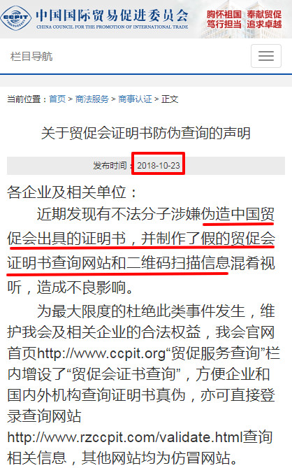 造假猖獗到什么程度呢?不僅證書是假的,它還能制作假的貿(mào)促會證明書查詢網(wǎng)站和二維碼掃描信息!��!